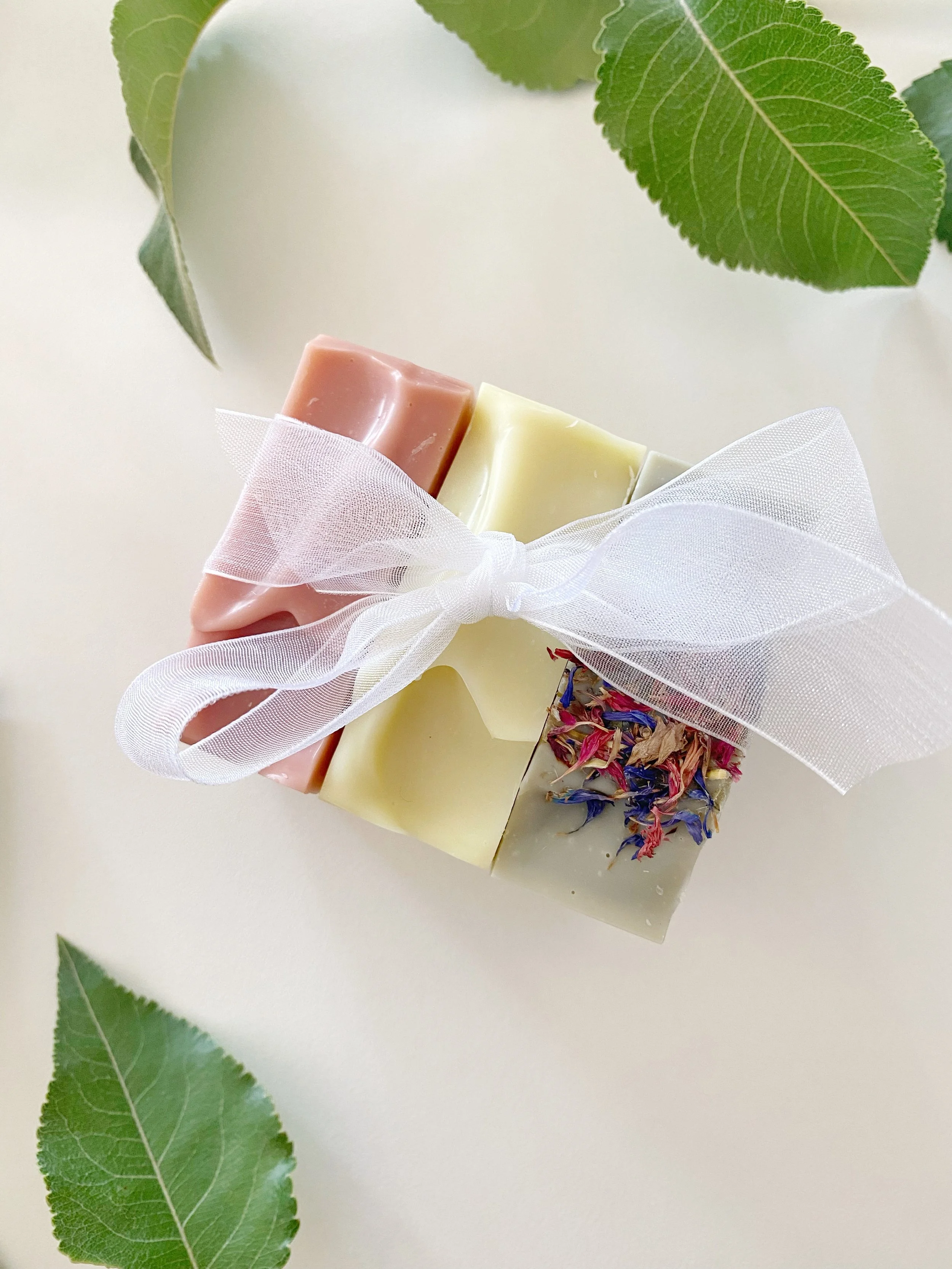 Three Handcrafted Soaps with Ribbon