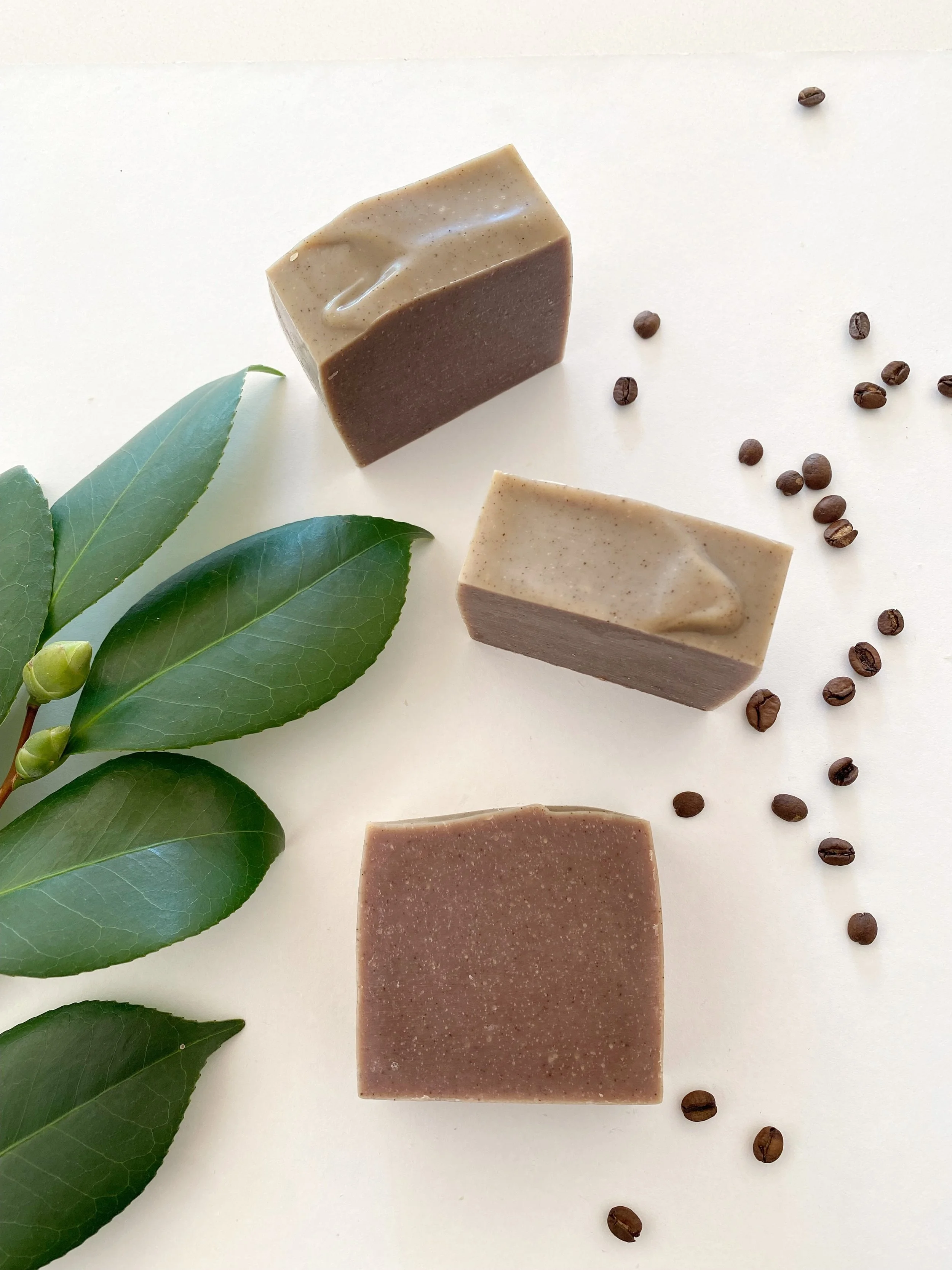 COFFEE, ORANGE + PATCHOULI EXFOLIATING BODY BAR. The finely ground coffee beans are for light exfoliation. An orange and earthy patchouli scent with a drop of nutmeg added. An all time favourite scent combination. This soap bar does not have a coffee scent. Colour brown.